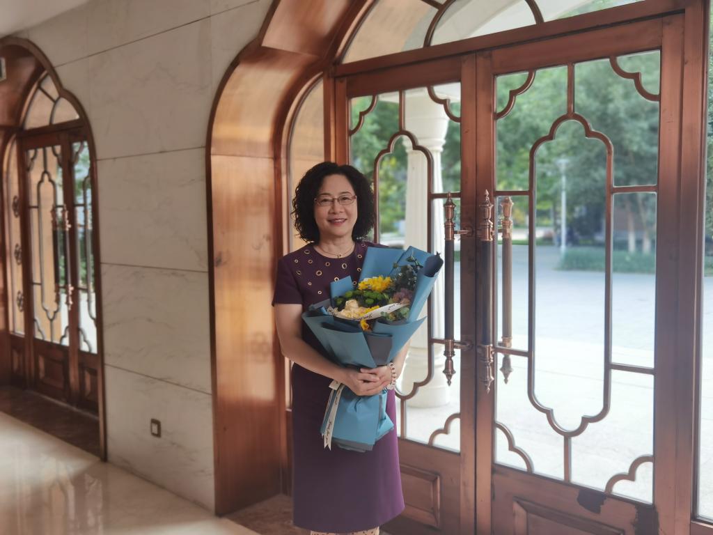 座谈结束后,大家合影留念,学生代表为程慧玲校友献花,常秀鹏书记代表beat365中文官方网站为校友赠送纪念品。