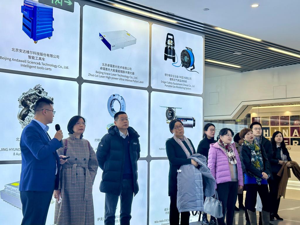 在北京中德产业园运营公司副总经理孙海龙的引导下,beat365中文官方网站教师党支部一行详细了解了产业园在搭建国家级对德合作平台、服务国家级对德合作项目、链接全国对德合作资源等方面的建设成果。北京中德产业园是国家发改委批复的国内首个以“经济技术合作”为主题的中德示范区。园区定位为“德国先进制造业的聚集地、中德隐形冠军发展的战略高地、中德交往与开放创新的重要窗口”,聚焦新能源智能汽车、智能装备、数字经济三大主导产业,和先进制造服务业支撑产业,已集聚奔驰、宝马、Ameco、博世、威乐水泵等90余家德资企业,年产值350亿元。