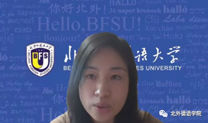 接下来,本科生党支部书记聂昊璇分享了自己的学习感悟。她认为以自己为代表的疫情一代青年大学生既生逢其时,也应肩负重任,应勇敢面对时代的“大考”,在疫情影响下找寻生活的平衡,担负起属于当代青年人的使命,在实践中考验和磨炼自己,实现自我价值。她以习近平总书记在二十大报告中对青年“怀抱梦想又脚踏实地,敢想敢为又善作善成”自勉,结合自己和同伴组队参加两次全国性德语赛事的经历,认为应从生活中的点滴小事做起,善始善终,善作善成,不忘初心,持之以恒,立志成为有理想,敢担当,能吃苦,肯奋斗的新时代好青年。