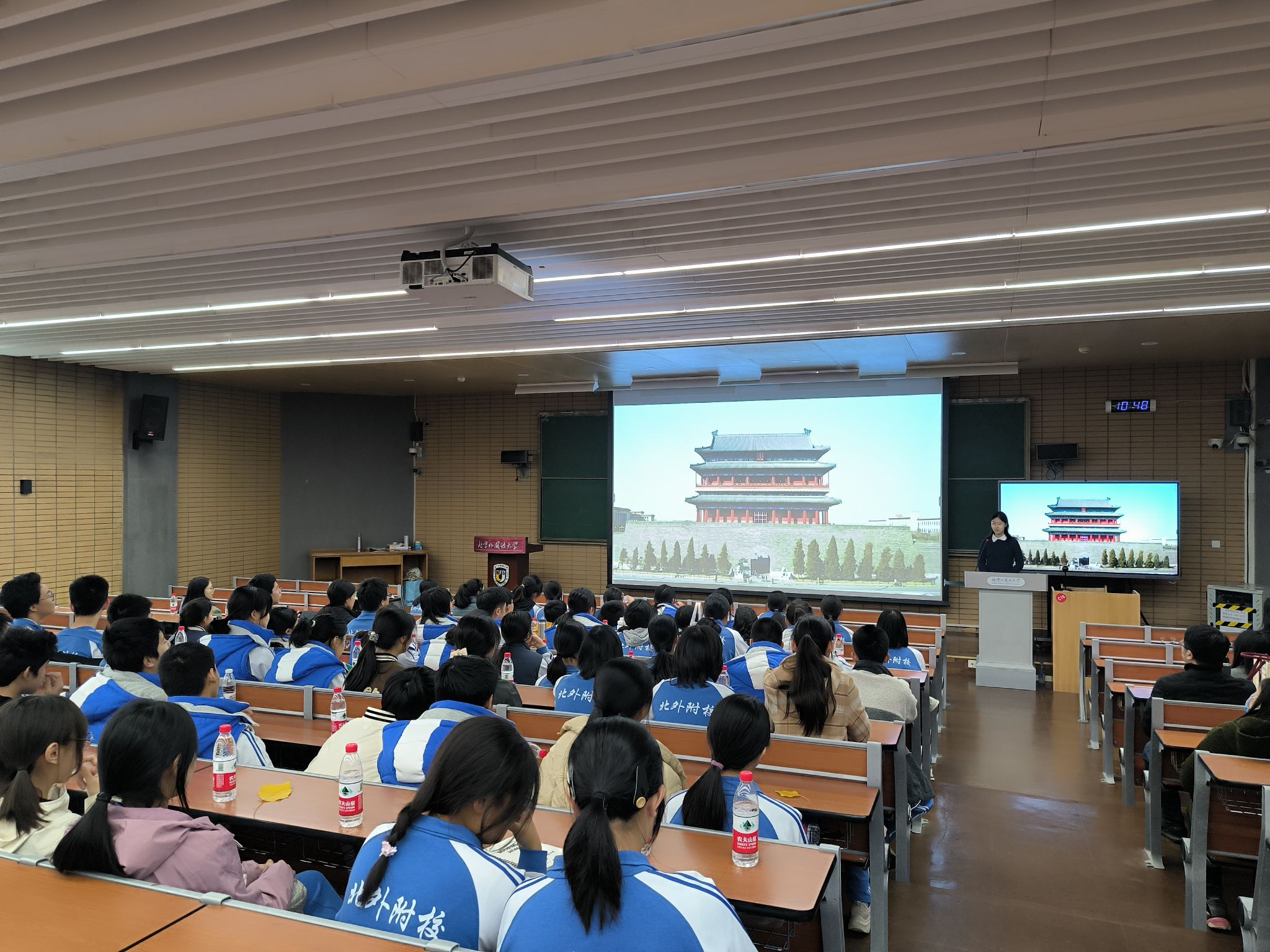 11月8日北外附校副校长、初中部党支部书记杨磊带队师生80人来访beat365中文官方网站,beat365中文官方网站党总支组织员张春霞,本科党支部罗惠心、熊菁华、田韵熙、郑瑞丹、张淡然,博士周濛濛、研究生张鸣天等人参与接待。先后陪同师生参观北外校史馆、语言博物馆、“拉贝与中国”主题展、北外人工智能实验室、图书馆等。在逸夫楼一阶罗惠心、熊菁华、田韵熙向来访师生介绍了大学生创新创业项目:北京中轴线研究、非遗皮影多语种传播、非遗苗喵秀多语种推广,向广大中学生介绍大学生如何开展科研创新研究,并运用语言来讲好中国故事,传播中国博大精深的传统文化。