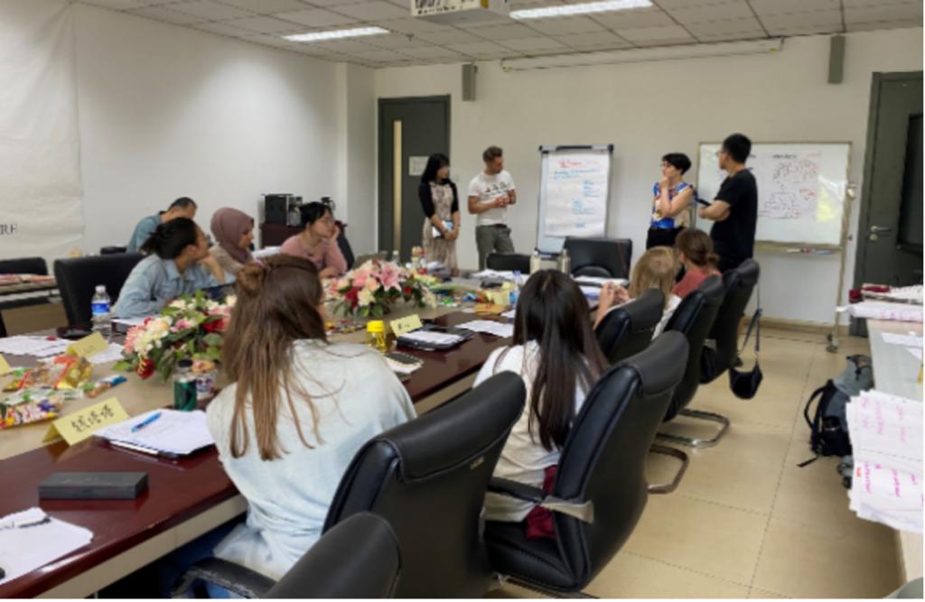 工作坊首日,中德两国同学通过破冰式的自我介绍迅速建立了友好关系,拉近了彼此的距离。在首轮的讨论环节中,双方学子坦诚交流了对彼此团队的期待以及预期中的对方对自身团队的期待,为后续的深入交流奠定了坚实的基础。当天下午,一场主题为“中国与德国:对手还是伙伴?”的热烈讨论,让学生们对两个国家在国际舞台上的角色与互动有了更深刻的理解。次日,学生们聚焦于生活与工作中的中德价值观,通过团队合作,共同展示了精彩的观点碰撞与深入交流。最后一天,工作坊迎来了高潮——模拟创建中德合资企业的实战演练:中德两国同学分组投入模拟的中德商务环境中,亲身体验跨文化合作的挑战与魅力。在展示环节,学生们展现了丰富的合作成果,充分体现出跨文化语境的协同作用和中德文化间的精彩交融。