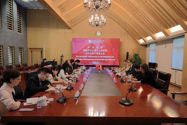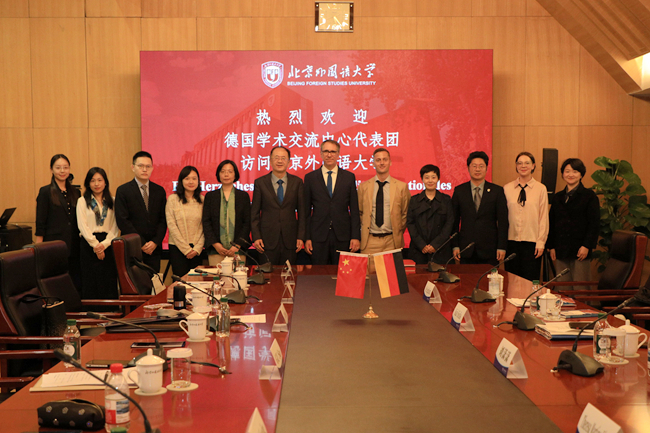 10月14日,德国学术交流中心(DAAD)秘书长凯·西克斯(Kai Sicks)一行访问beat365中文官方网站,北外校长、党委副书记贾文键会见代表团一行。