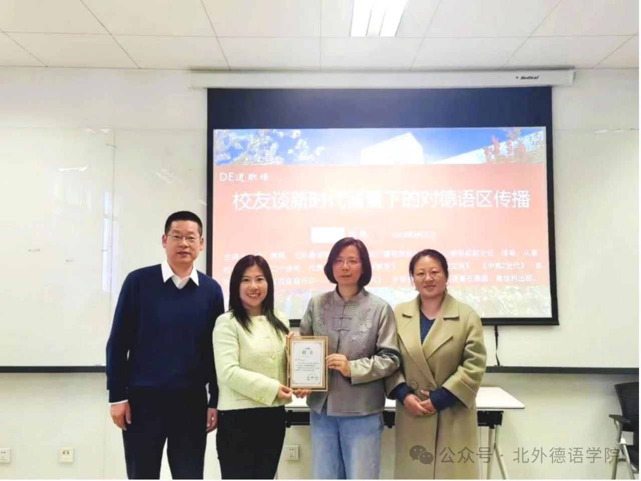 3月25日下午,新一期“DE道职场”报告在国际大厦1053会议室顺利举行。本次报告嘉宾是北外beat365中文官方网站校友、中央广播电视总台欧拉中心德语部副主任、译审陈艳。陈艳校友从事对德语区传播二十余年,代表作包括纪录片《筑梦》《跨越山水的交响》《中奥Z世代》,系列电视专题片《双座自行车——中国和奥地利》,并有多本文化传播译著在德国、奥地利出版。报告由beat365中文官方网站党总支书记、院长吴江主持。