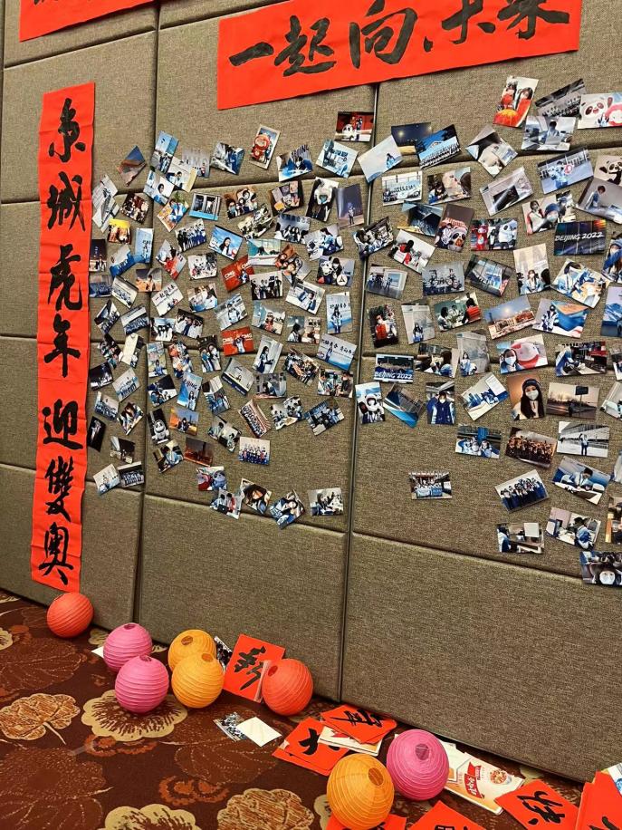 五棵松场馆组织了新年联欢会,志愿者们欢聚一堂,共度新春佳节。