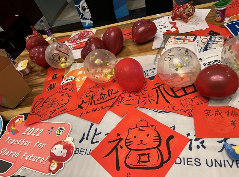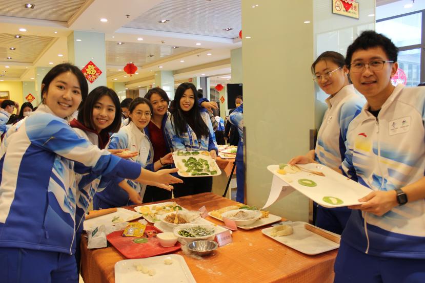 多语服务中心的志愿者们在教工食堂相聚一堂,包饺子、组织破冰活动,学校为大家准备了丰盛的年夜饭,晚上一起看春晚、做游戏,志愿者们在一起度过了一个热闹有趣的除夕。