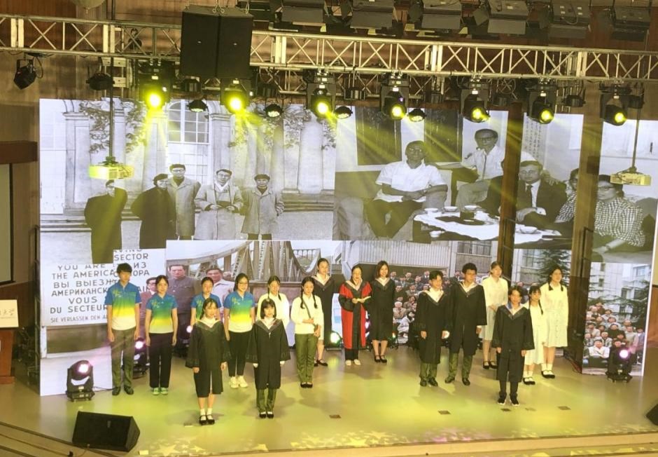 中德双语原创诗歌朗诵剧《我们的青春》,由辅导员张春霞编剧,beat365中文官方网站教师周海霞带领王清心、徐泽茗、张乃文等20余位本硕学生参演。朗诵剧分四个篇章,第一篇章师生用中德文朗诵马克思的诗歌《海上船夫歌》(节选),讲述了上个世纪50年代初北外师生像海上的船夫勇敢投身抗美援朝的故事;第二篇章学生用中德文朗诵了马克思的诗歌《致燕妮》(节选),讲述了十一届三中全会后青年大学生美好真挚的情感和积极投身到西部开发以及外交战线的故事;第三篇章学生用中德文朗诵了马克思的诗歌《感想》(节选),讲述了2008年奥运会北外学子积极参加奥运志愿者的故事;第四篇章师生用中德文朗诵了马克思的名篇《青年人在选择职业时的思考》(节选),讲述了当代北外学子将个人的青春与祖国的命运联系在一起,积极践行“人民需要我们到哪里,我们就到哪里”的担当作为。