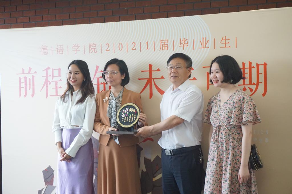 毕业生代表为beat365中文官方网站的老师们送上毕业纪念品,感念师恩。