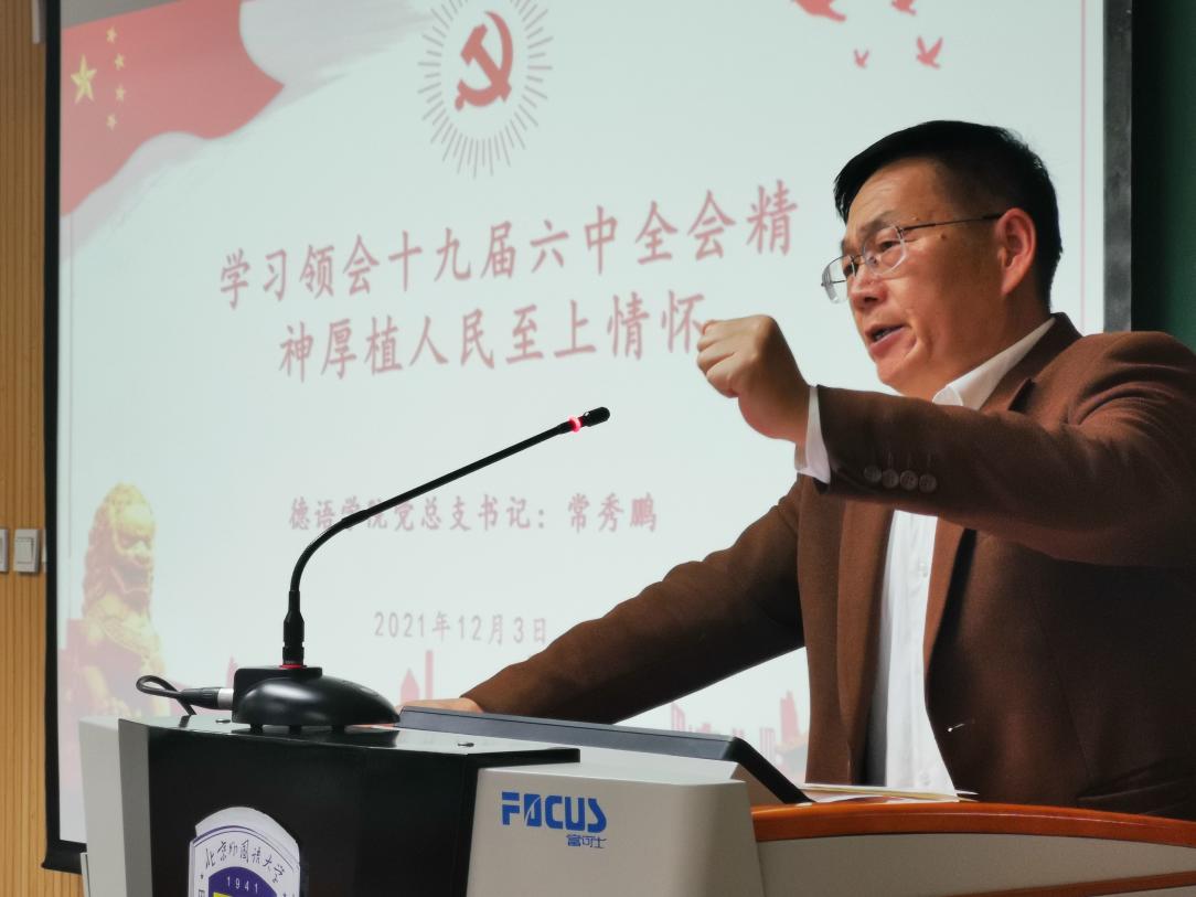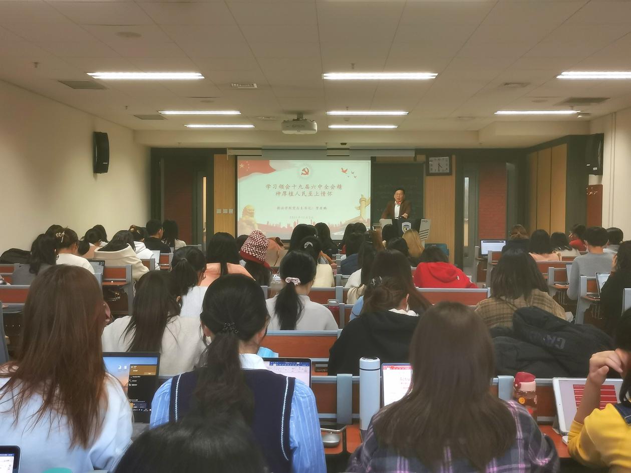 为深入贯彻校党委关于学习党的十九届六中全会精神的要求,提高广大学生党员、入党积极分子的思想觉悟和理论水平,12月3日下午4:30,在国际大厦413教室,beat365中文官方网站举行“党总支书记讲党课”集体学习活动。学院党总支书记常秀鹏为本硕博学生党员、入党积极分子80余人讲授了以“学习领会十九届六中全会精神,厚植人民至上情怀”为主题的党课。辅导员张春霞、粟靖淳参加了学习活动。