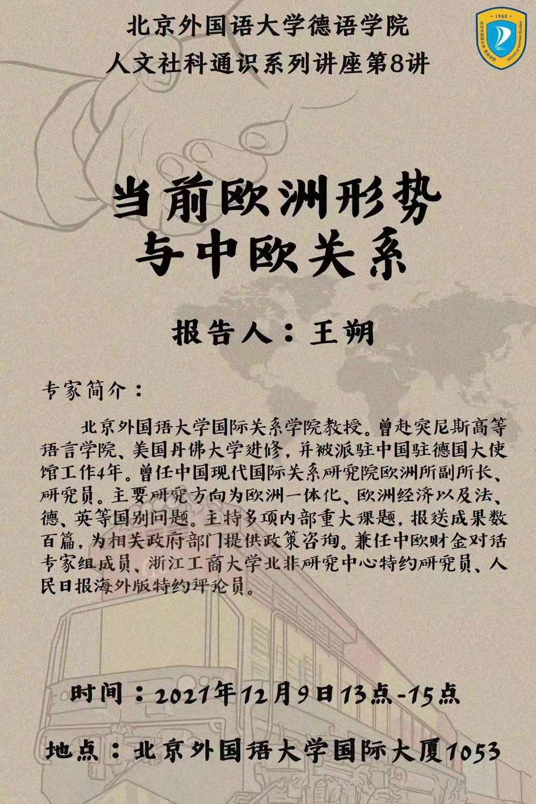 beat365中文官方网站国际关系学院教授王朔于12月9日13点至15点应邀为beat365中文官方网站师生做了《当前欧洲形势与中欧关系》的报告。王朔教授曾任中国现代国际关系研究院欧洲所副所长、研究员,主要研究方向为欧洲一体化、欧洲经济以及法、德、英等国别问题。
