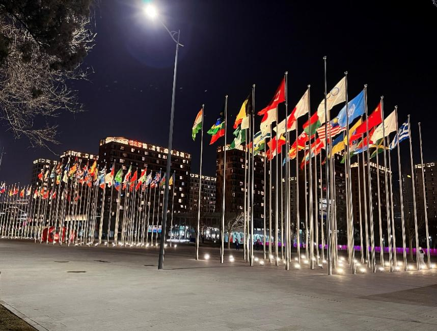 北京冬奥村里高高飘扬的各国国旗