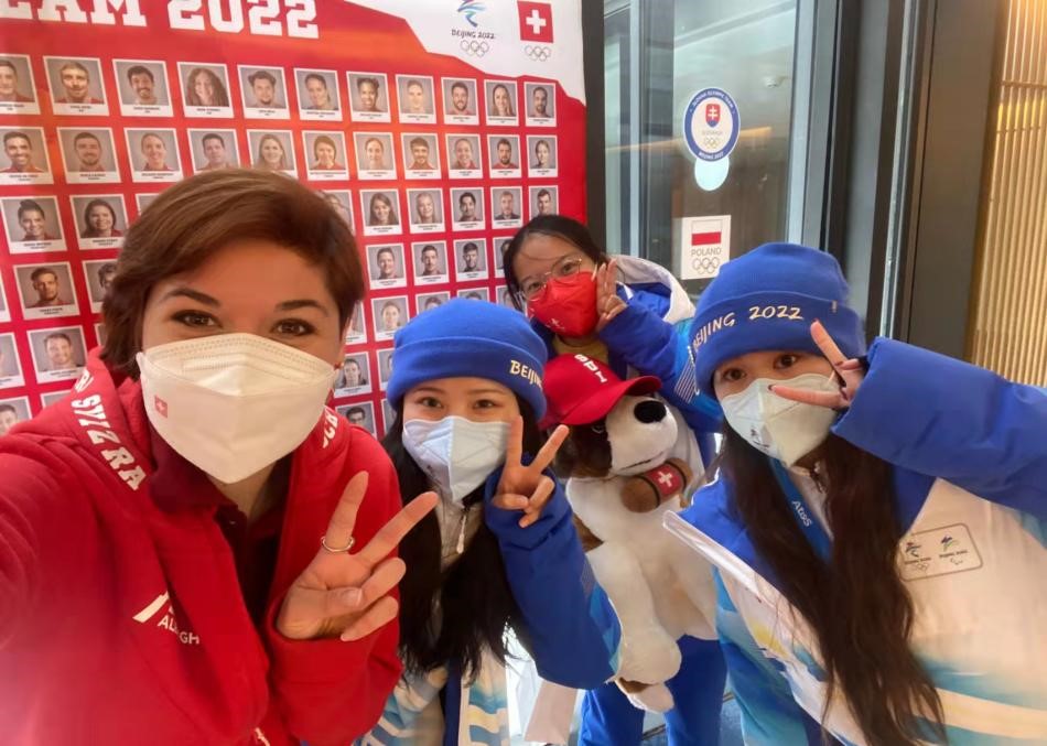 列支敦士登是世界上第五小的国家,人口也比较少,在延庆赛区仅有一位运动员——Marco Pfiffner参赛。也正是因为代表团的规模很小,我和代表团每一位成员都成为了朋友,一起度过了美好且短暂的冬奥会时光。运动员Marco是个很有趣的年轻人,送给了我们一人一张明信片,上面有他亲笔画的手持列支敦士登国旗的冰墩墩。我们还陪着团长去国家高山滑雪中心看男子滑降比赛,和团长一起挥舞列支敦士登和中国的国旗为Marco Pfiffner加油助威。在朝夕相处中,我们不知不觉已将自己当成了他们中的一份子,对他们的服务和支持不再是出于工作的需要,而是出自朋友间的关怀和爱意。我很珍惜这种难得的归属感,我热爱我的工作,在服务的时候也充满了激情和活力。