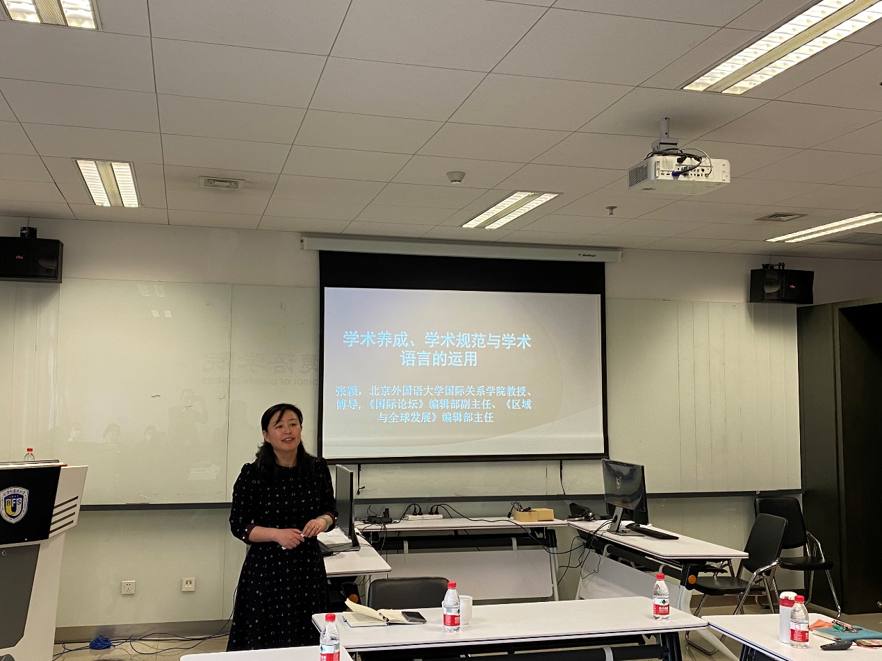 2022年3月25日下午,beat365中文官方网站学术写作系列讲座第2讲在北外国际大厦举行。beat365中文官方网站国际关系学院张颖教授应邀作了题为“学术养成、学术规范与学术语言的运用”的讲座。beat365中文官方网站教师与本硕博学生参加了此次活动。讲座由beat365中文官方网站党总支副书记、院长吴江教授主持。