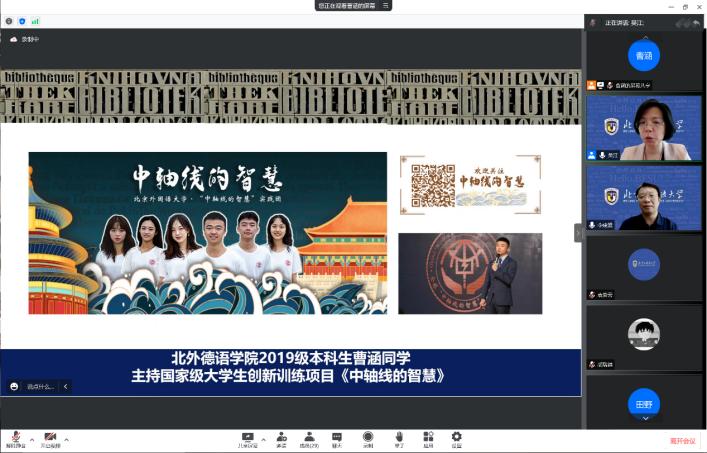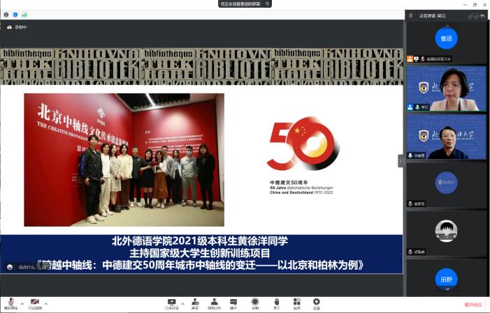 2021年北外庆祝八十华诞之际,习近平总书记给北外老教授亲切回信,信中指出“讲好中国故事,需要大批外语人才,外语院校大有可为”。beat365中文官方网站两项国家级“大学生创新训练项目”——《中轴线的智慧》与《跨越中轴线》正是德院学子近年来践行用外语讲好中国故事的生动案例。报告会开场,吴江代表学院对李建盛给与项目建设提供学术指导表示诚挚的感谢。