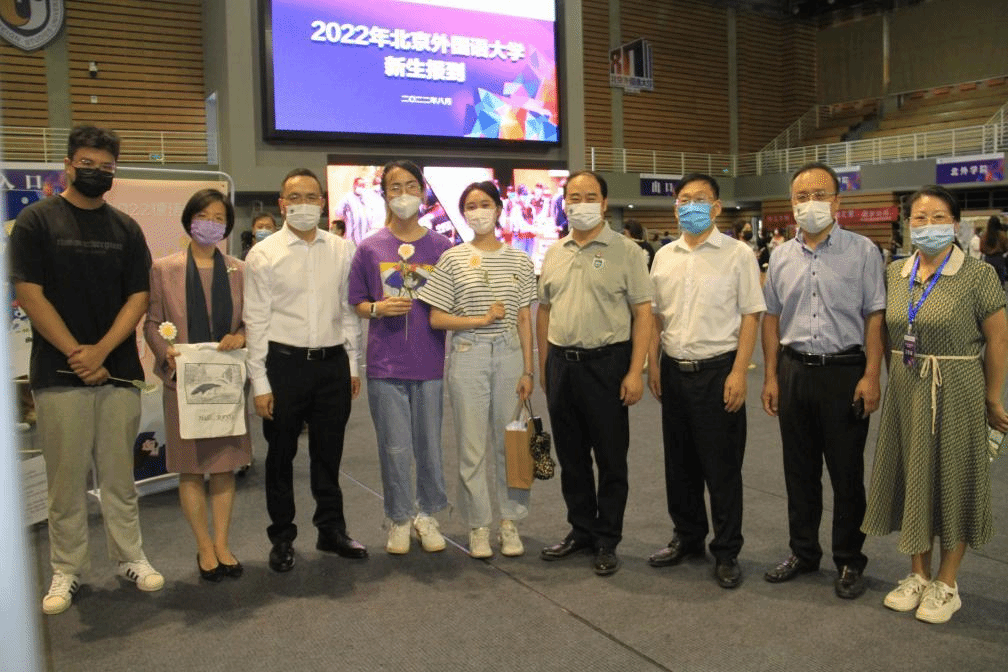 校党委书记王定华,党委副书记、校长杨丹、党委常委、副校长贾德忠来到beat365中文官方网站新生报到处指导工作,beat365中文官方网站党总支书记常秀鹏,党总支副书记、院长吴江和辅导员张春霞、张婧、黄唯城给校领导展示了迎新处的布置与新生礼品,之后校领导与大家一起亲切合影。