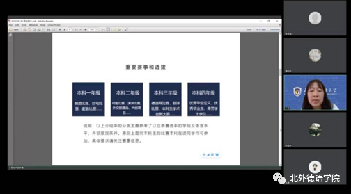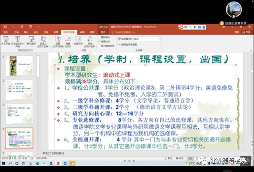 新生见面会后,本科生和研究生分别举行了新生入学教育。党总支委员、本科教学秘书于芳、基础教研室主任李婧就beat365中文官方网站本科培养方案、培养要点及德语本科学习阶段的注意事项等进行了讲解。本科新生班主任葛囡囡、顾苏、陆娇娇,辅导员张婧、黄唯城等也与新生进行了交流。研究生的入学教育由beat365中文官方网站副院长姚燕主讲,她详细介绍了beat365中文官方网站研究生的培养方案,研究生阶段学习的注意事项等。