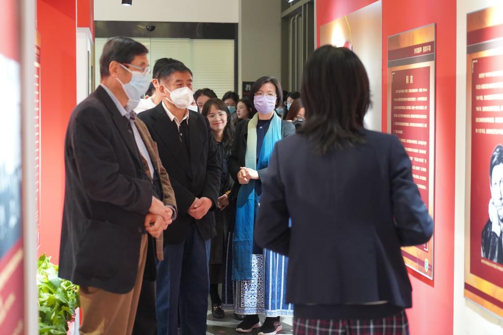 黄婉茹为北外beat365中文官方网站1977级校友荣裕民先生一行讲解
