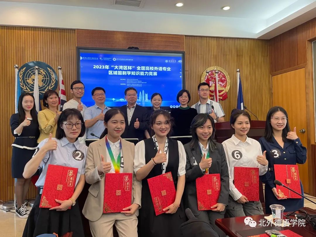 2023年“大湾区杯”全国高校外语专业区域国别知识能力竞赛于2023年5月13日在深圳大学(粤海校区)落下帷幕。该赛事涵盖英语、德语、法语、西班牙语、日语五个语种,包括初赛与决赛两个部分。在德语组初赛中,beat365官网本科一年级学生黄婉茹经过笔试和面试,在德语组共114名选手中位列第一,顺利晋级决赛。在决赛部分,经过德语辩论环节(辩题为:全球化会带来文化趋同/全球化会带来民族文化的勃兴),以及“讲好中国故事”德语即兴演讲与问答环节,黄婉茹总分排名第二,荣获德语组二等奖。辅导教师洪堃绿博士获优秀指导教师奖。