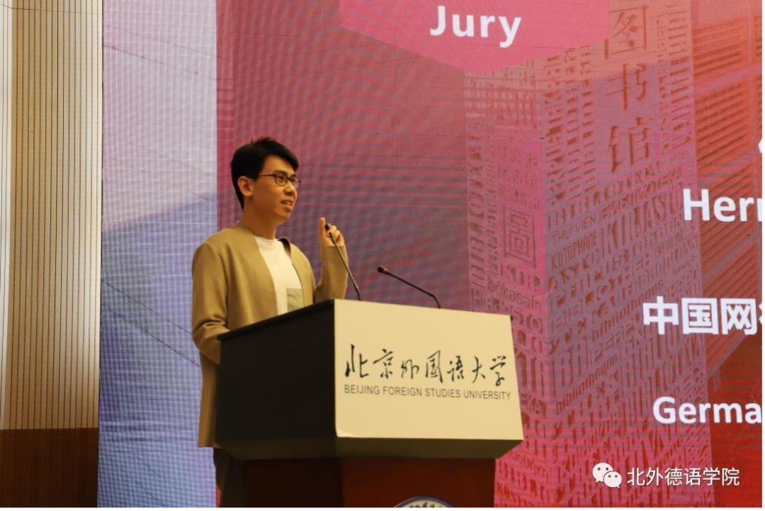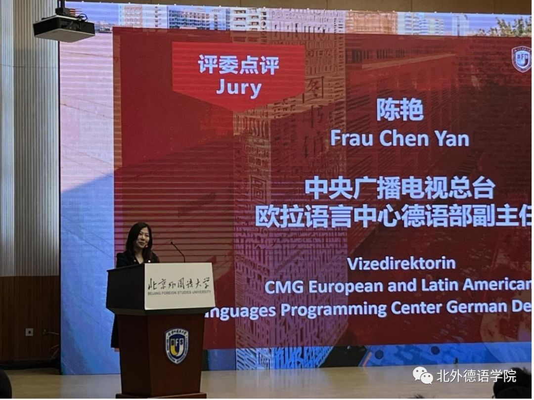 本届大赛决赛邀请了贾建新参赞、北外山东校友会会长、青岛鸿裕吉交通装备有限公司总经理秦思刚、中央广播电视总台欧拉语言中心德语部副主任陈艳以及中国网德语频道主编任斌担任评委。赛事环节由beat365中文官方网站2019级本科生曹涵和2022级本科生黄婉茹用中德双语主持。