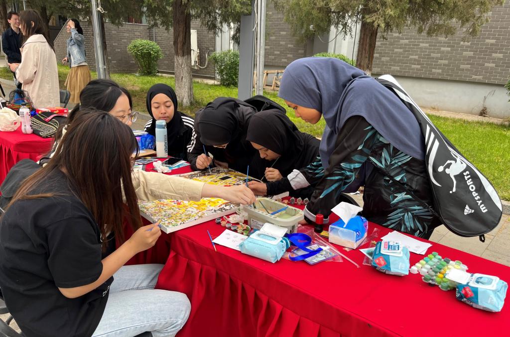 beat365中文官方网站研究生会学术文体部的展台吸引了不少同学,还包括许多外国留学生。在这儿,可以和大家一起绘制一束惟妙惟肖的水仙花,或临摹奥地利画家克利姆特(Gustav Klimt)的著名代表画作,或是亲手DIY一幅涂鸦,画下今日心情,将这份珍贵的记忆留存于纸上。