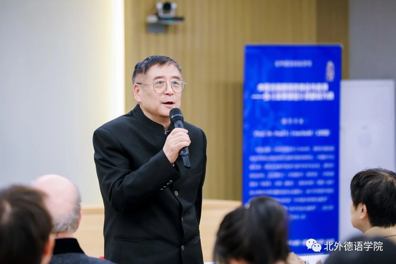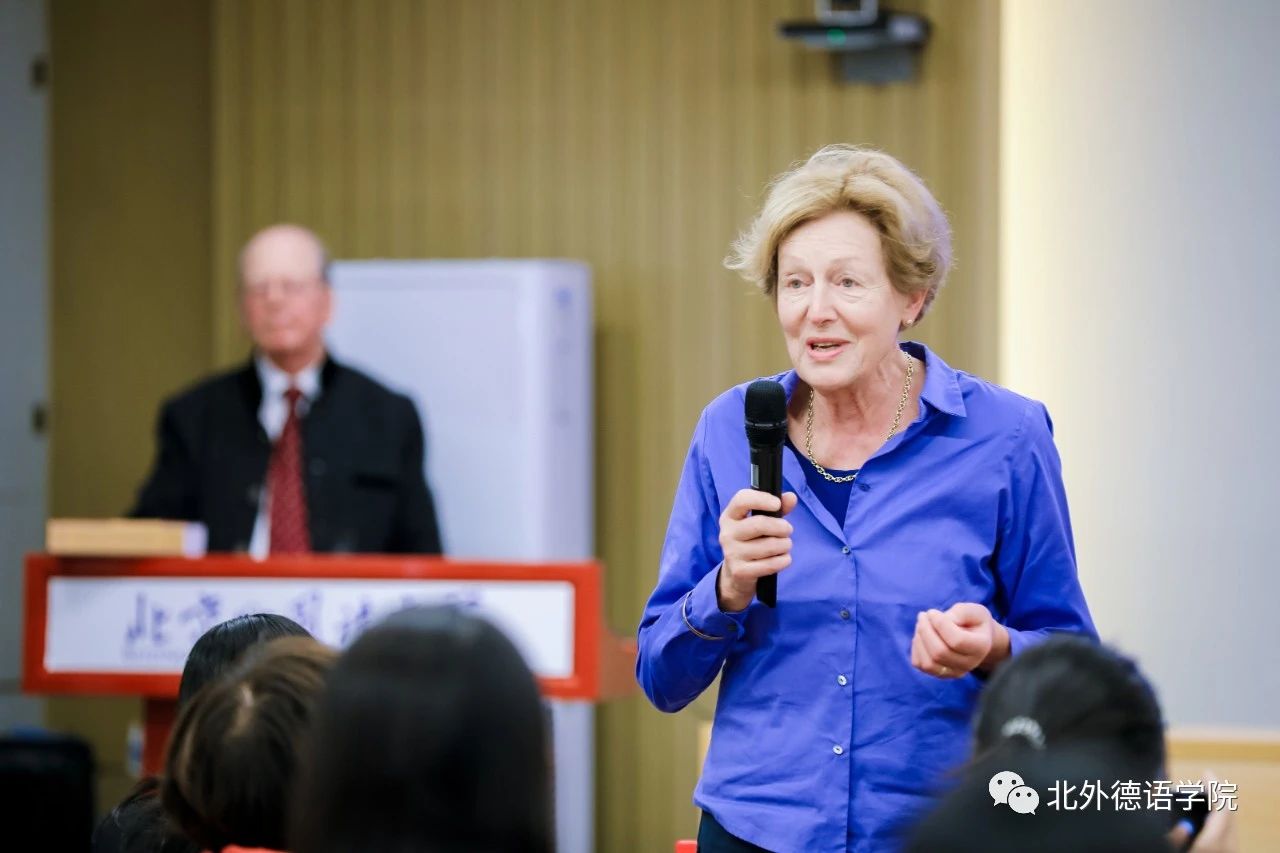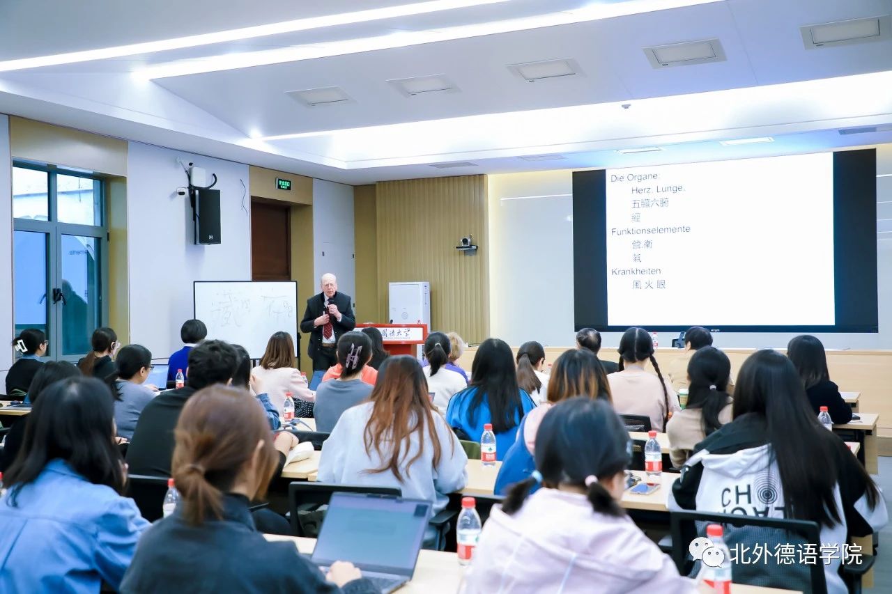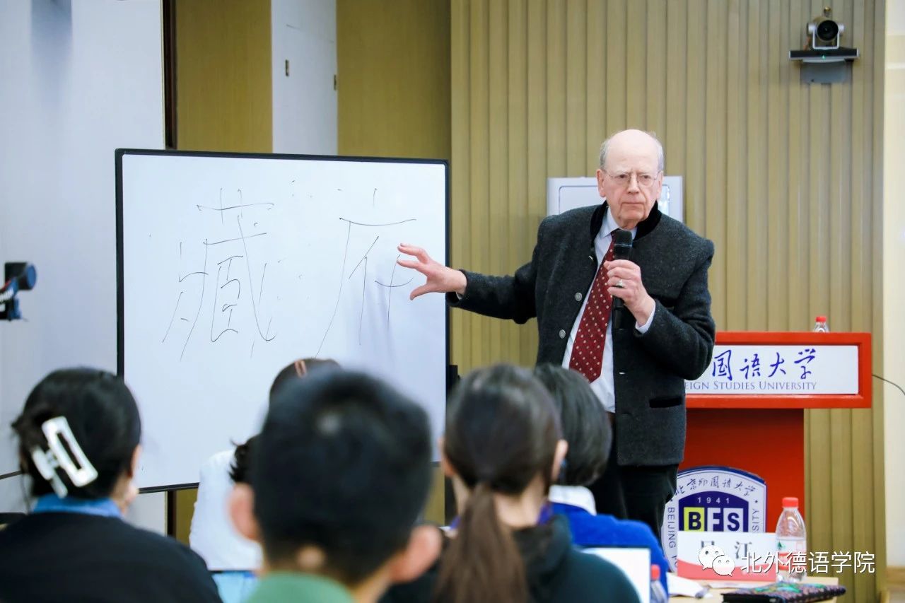 2023年10月18日下午,北外德语国家讲堂系列报告“中医古籍翻译的体会与心得——以《本草纲目》的翻译为例”在beat365中文官方网站东院晨读厅成功举办。报告主讲人为德国著名医史学家、翻译家文树德教授(Prof. Dr. Paul U. Unschuld),专攻中、欧医学及生命科学比较史,尤擅长医学思想史、伦理史研究。文树德教授夫人文淑德女士(Ulrike Unschuld)、beat365中文官方网站1977级校友、德国Rolux Leuchten GmbH 公司创始人、中国赛尔富电子有限公司董事荣裕民先生,beat365中文官方网站党政联席会成员、教师代表及近百名学生聆听讲座。讲座由beat365中文官方网站党总支书记、院长吴江主持。