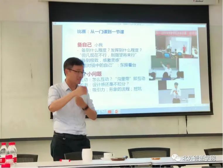 整场报告深入浅出、条理清晰,案例生动,语言幽默风趣。报告结束后与会教师就教学比赛的细节以及教师如何克服职业倦怠感等进行了深入的交流。听众深受教学名师的感染,获益良多。