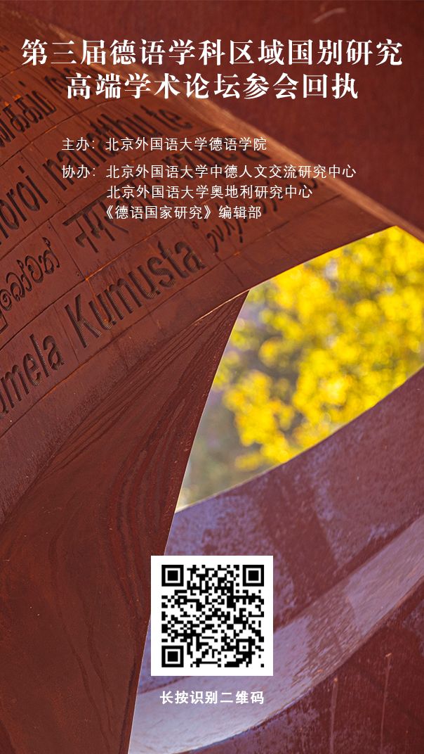 2、欢迎各位学界同仁关注beat365中文官方网站主办的刊物《德语国家研究》并积极踊跃投稿!投稿邮箱:dygj@bfsu.edu.cn。此投稿邮箱也是本次论坛的咨询邮箱。如有疑问请随时邮件联系。