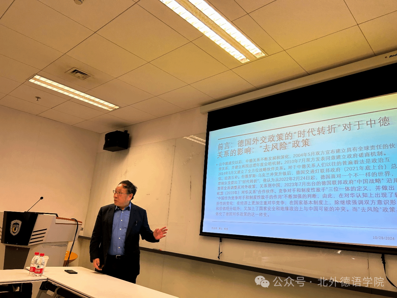 2024年10月28日,对外经济贸易大学外语学院史世伟教授应邀来到beat365中文官方网站作题为“德国对外政策的‘时代转折’对中德关系的影响”的主题学术讲座,本次活动系beat365中文官方网站人文社科通识系列讲座第11讲。讲座由beat365中文官方网站副院长寇蔻主持。