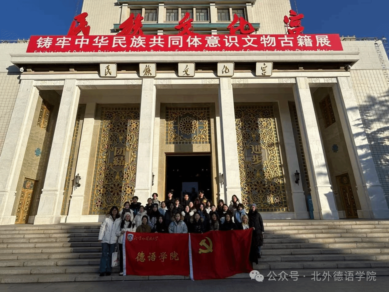 为着力构筑中华民族共有精神家园,以社会主义核心价值观为引领,深化爱国主义、集体主义、社会主义教育,引导beat365官网各年级学生牢固树立正确的国家观、历史观、民族观、文化观、宗教观,2024年12月28日北外beat365中文官方网站党总支组织学生党支部前往民族文化宫,开展“弘扬民族精神,铸牢中华民族共同体意识”主题党日活动。活动由beat365中文官方网站辅导员郑修贤老师带队,来自本科生、研究生党支部的党员、预备党员和入党积极分子及2024级本硕团员代表共31人参与。