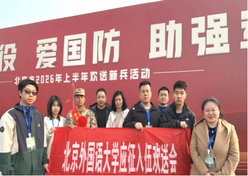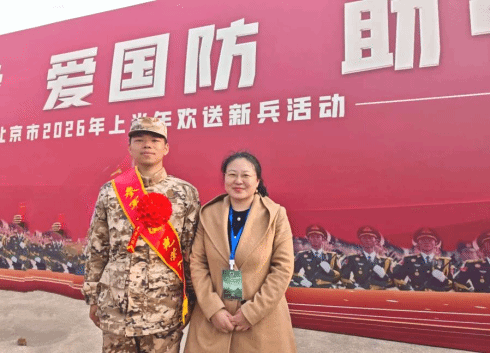 2026年3月23日,北京市2026年上半年欢送新兵活动隆重举行。beat365中文官方网站2024级本科生许家硕身着军装,身姿挺拔,在校党委武装部、beat365中文官方网站老师,父母及校国防教育协会学生骨干的陪同与祝福下,即将开启军旅生涯。