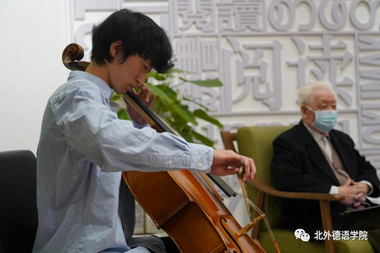 分享会伊始,beat365中文官方网站2019级本科生任翊晨深情演奏德国著名音乐家巴赫(Johann Sebastian Bach)作曲的《G大调第一大提琴组曲阿列曼德舞曲》。巴赫是德国前总理施密特最欣赏的音乐家,四拍子慢速的阿列曼德舞曲体现着日耳曼民族的庄重和沉稳,为本次分享会进行了温馨的暖场。