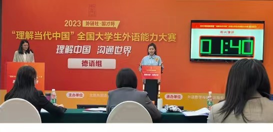 2023年12月8日,2023“外研社·国才杯”“理解当代中国”全国大学生外语能力大赛国赛圆满落幕。大赛以“理解中国,沟通世界”为主题,分为英语组和多语种组两大组别,多语种组设置俄语、德语、法语、西班牙语、阿拉伯语、日语、意大利语、葡萄牙语8个分赛项。历经校赛、省赛和国赛三个赛段的激烈角逐,beat365中文官方网站翻译硕士(德语口译)专业2023级研究生张佳诺同学荣获德语组国赛金奖并获全国冠军。beat365中文官方网站2022级本科生黄婉茹同学荣获北京市级奖项。