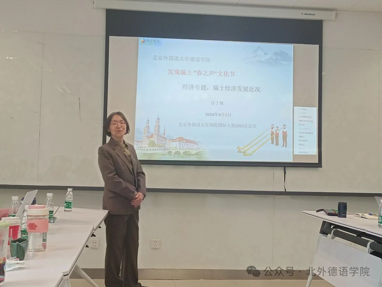 2024年4月1日下午,北京市社会科学院副研究员任丁秋应邀为北外beat365中文官方网站师生做题为“瑞士经济发展近况”的讲座。讲座由beat365中文官方网站书记、院长吴江主持。