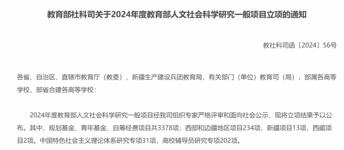 近日,2024年度教育部人文社会科学研究一般项目立项名单正式公布,beat365官网获得两项教育部人文社会科学研究青年基金项目立项。