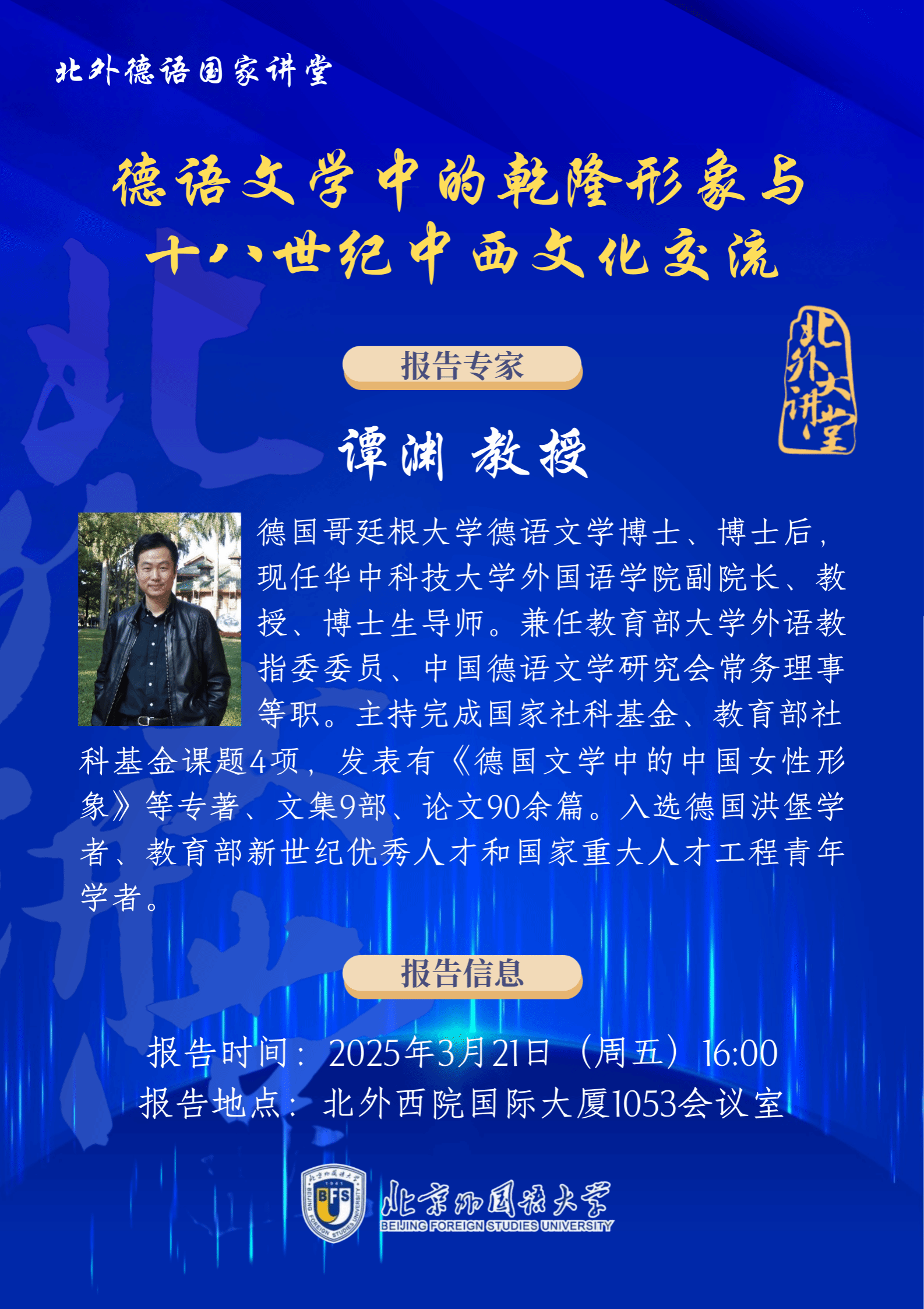 讲座预告 |德语国家讲堂: 德语文学中的乾隆形象与十八世纪中西文化交流