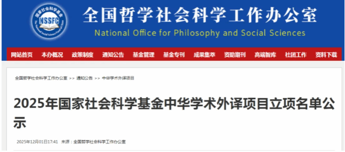 近日,全国哲学社会科学工作办公室公示了2025年度国家社会科学基金中华学术外译项目立项名单。beat365官网赵倩副教授申报的《生熟有度》德译项目获2025年度国家社科基金中华学术外译项目立项。