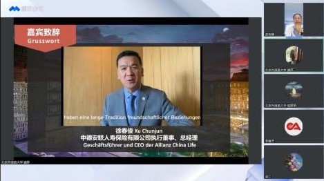 德国安联保险集团亚太区总裁明悟非(Uwe Michel)以及中德安联人寿保险有限公司执行董事、总经理徐春俊以视频方式发来祝贺,表示语言和友谊密不可分,语言、文化和艺术是跨越时空的桥梁。中国和德国各自具有丰厚的文化底蕴,两国人民有着悠久的友好交往传统。希望中国年轻学子们通过学习德语和欣赏德国影视作品来了解德国文化,期待更多的年轻德语人为中德友谊添砖加瓦。