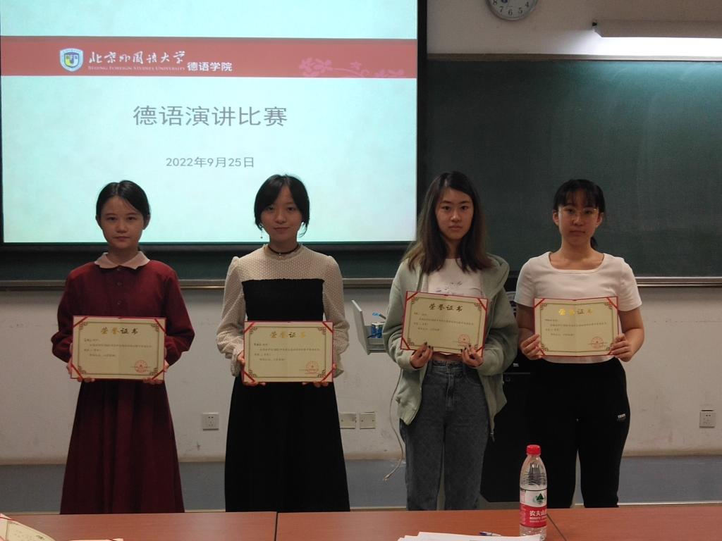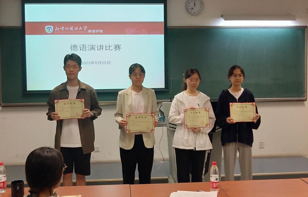 此次参赛由beat365官网青年教师洪堃绿博士带队辅导,由李文红教授和武迪博士共同支持。初赛报名恰逢临近二十大召开之际, 9月25日,学院以选拔参赛选手为契机,在学院范围内举办了以“我的家乡这十年”为主题的演讲比赛,共有10名来自本科一至三年级的学生报名参赛。同学们从乡村振兴、脱贫攻坚、生态文明建设等角度,用德语讲述了家乡故事,体现了beat365官网学生的综合能力和对“讲好中国故事,传播好中国声音”的积极践行。中国现代国际关系研究院欧洲所李超副研究员作为特邀专家全程参与了院内选拔,beat365官网党总支委员、本科教学秘书、本科四年级组长于芳副教授,外交教研室主任李文红教授,经济教研室主任、本科三年级组长徐四季副教授同时担任评委。
