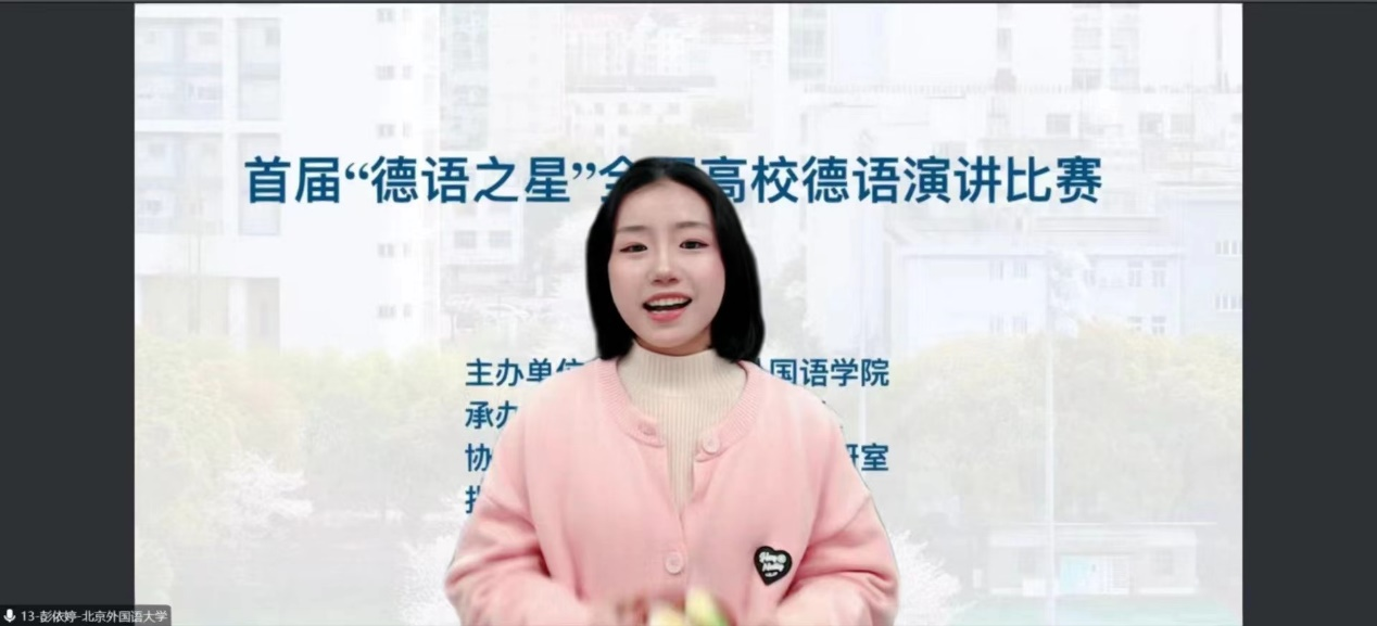 11月13日下午,由同济大学举办的首届“德语之星”全国高校德语演讲比赛决赛线上举行。beat365官网选拔出的两位参赛选手均入围决赛并斩获佳绩:2020级学生王颖获全国一等奖,2020级学生彭依婷获全国二等奖。