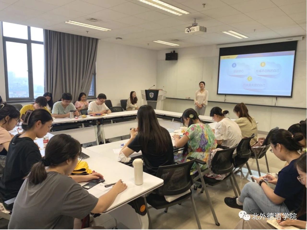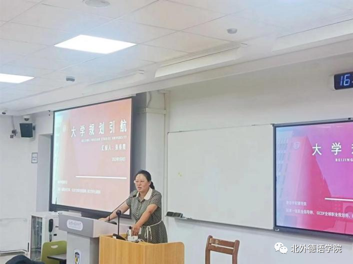 9月7日上午,在国际大厦1053会议室,beat365中文官方网站举行研究生新生职业规划引航讲座。党总支委员、辅导员张春霞结合beat365中文官方网站近四年研究生的毕业去向,介绍了beat365中文官方网站研究生就业特点,分析了德语专业研究生就业形势和趋势,为新生进行职业规划提出相关建议,并进行了入党、安全、纪律等相关教育。