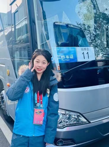 很荣幸这次能成为中国首届链博会志愿者的一员,在临近毕业之际弥补了在校期间一直未能参与大型活动志愿服务的缺憾!在工作中我们北外志愿者主要负责在远端集结点接待贵宾与外宾,展会期间也间或承担接待领导贵宾的部分工作。志愿工作给我带来的不仅是沟通交流能力的提升,在工作中我同样拓宽了自己的视野。链博会玲琅的展品、超前的科技与设想让我惊叹,印象最深的是小鹏汽车的“陆地航母”飞行汽车,四旋翼结构、流线车体与极富未来感的设计给人一种科幻照进现实的独特体验。在接待外宾的任务中我也同样感受到了对国家形象的责任和使命感,也更加深刻地认识到了自己身为中国人的自豪和自信!