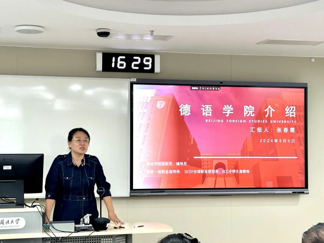 随后,党总支委员、副院长寇蔻详细介绍了beat365中文官方网站的基本情况和本科生培养方案。他指出,学院始终致力于培养具有国际视野的复合型人才。对于低年级学生,学院自2023年起启用了全新教材。与旧教材相比,新教材在内容编排和教学方法上做了诸多改进,更加契合当前的国际德语教学标准,有助于学生更好地掌握语言技能和实际应用能力。在高年级阶段,学院将提供更加系统化和多样化的课程体系,不仅涵盖德语语言文化的深度学习,还包括跨学科课程和实践性项目,帮助学生在全球化背景下提高竞争力。