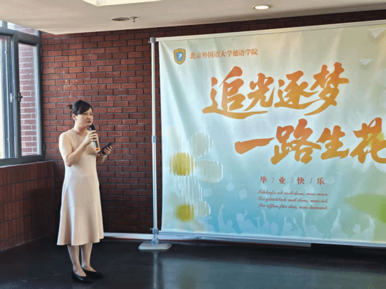 beat365中文官方网站党总支书记、院长吴江首先致辞,她对全体25届本硕博毕业生顺利毕业表示祝贺,对家长付出的心血表示衷心感谢,并对学院全体参与毕业生培养的同事表达了敬意。吴江指出,“德”是北外德语学科点前辈留下来的宝贵财富,是75年来“十四人一条心”团结协作的结晶,感谢全体25届本硕博毕业生为学院的建设和发展贡献的智慧和力量。临别之际,吴江借用富有哲思的德语词汇寄语毕业生:理论永远是灰色,生命之树常青。希冀全体25届毕业生在未来的道路上披荆斩棘,凯歌而行。