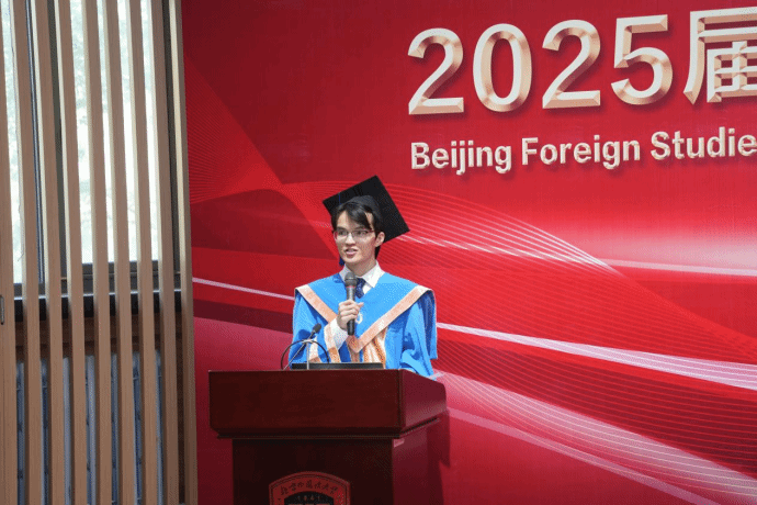 beat365中文官方网站2025届硕士毕业生舒哲作为学生代表发言,他深情回顾了在北外本硕读书的七年时光,从零起点攻克德语,到系统研习德语课程,再到深耕语言学专业领域,跨越挑战的历程,使他在语言技能与学术素养上实现跃升,更教会他以探索者的姿态在专业之路上持续深耕,在毕业季的回望里,这些都成为北外赋予他最珍贵的勋章。他感谢所有老师、同学、家长,也希望每个毕业生于时光长河中,做自己的主角,把每一次“我想”活成掷地有声的行动,让每一个“我成为”都生长成独一无二的模样。